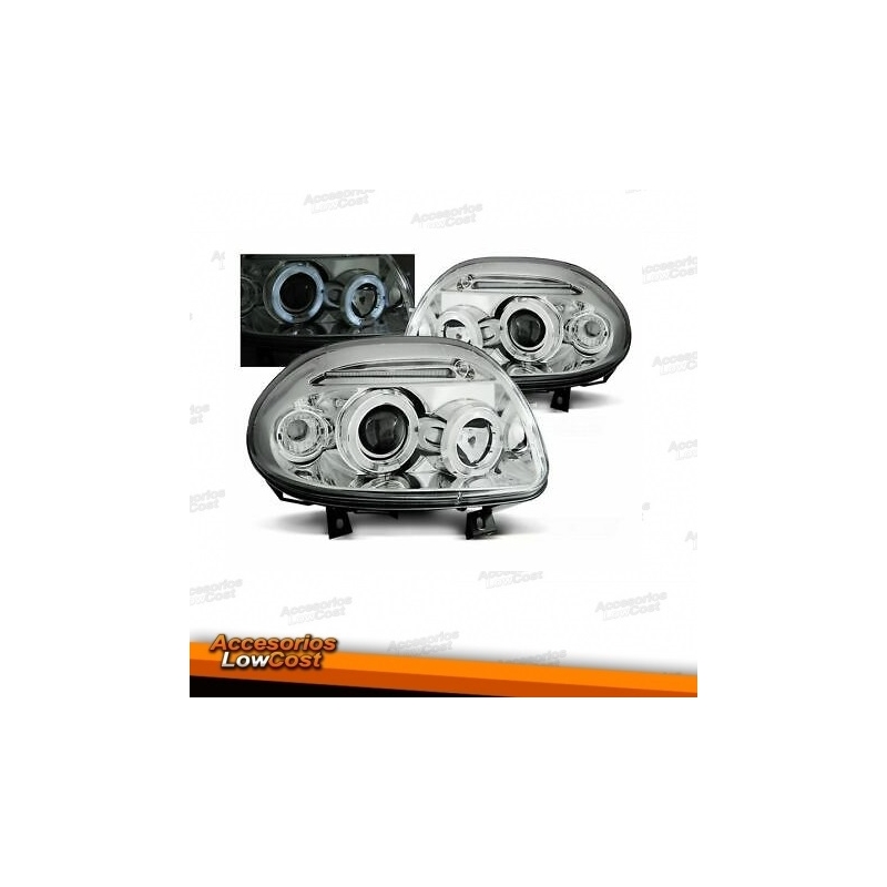 FARÓIS ANGEL EYES COM PROJETOR ( OLHO DE BOI ) PARA RENAULT CLIO de 1998 a 2001.