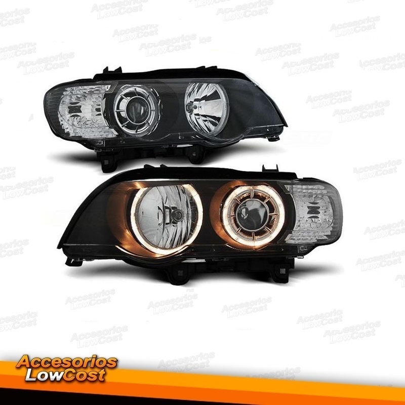 FARÓIS ANGEL EYES COM PROJETOR ( OLHO DE BOI ) PARA BMW X5 de 1999 a 2003.