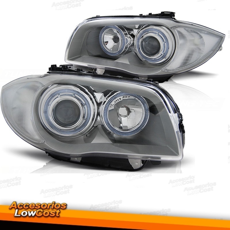 Faróis Angel Eyes para BMW serie 1 E87 9/04 - 2011 . Fundo cromado.