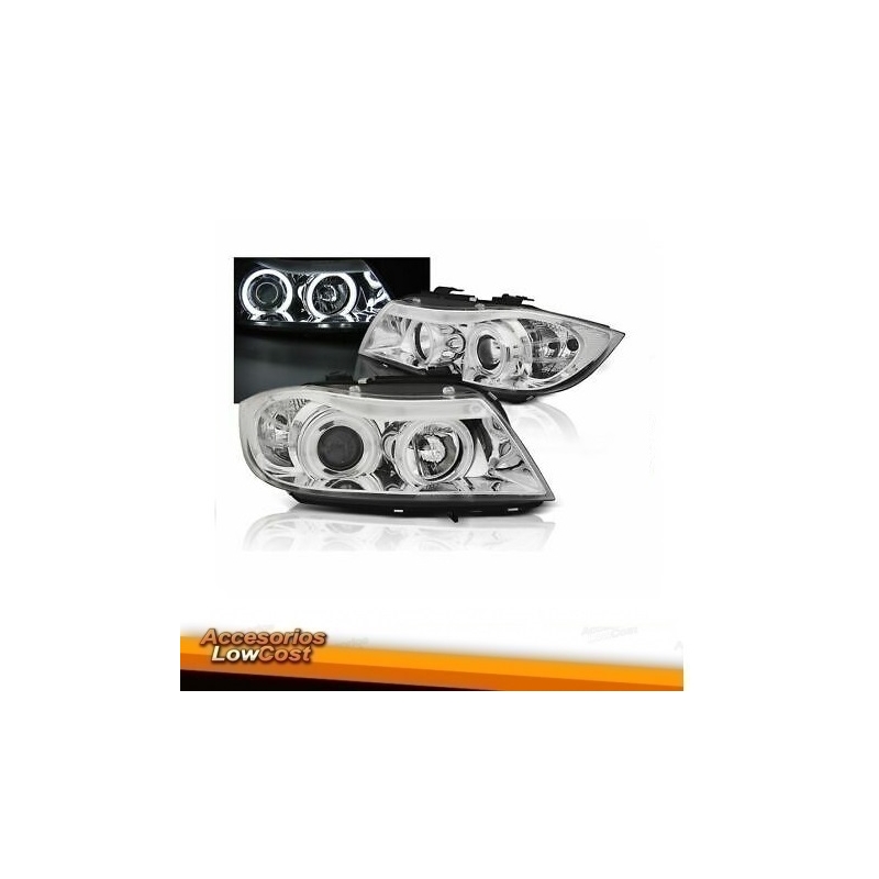 FARÓIS ANGEL EYES COM PROJETOR ( OLHO DE BOI ) PARA BMW SERIE3 E90 4PORTAS de 2005 a 2008.