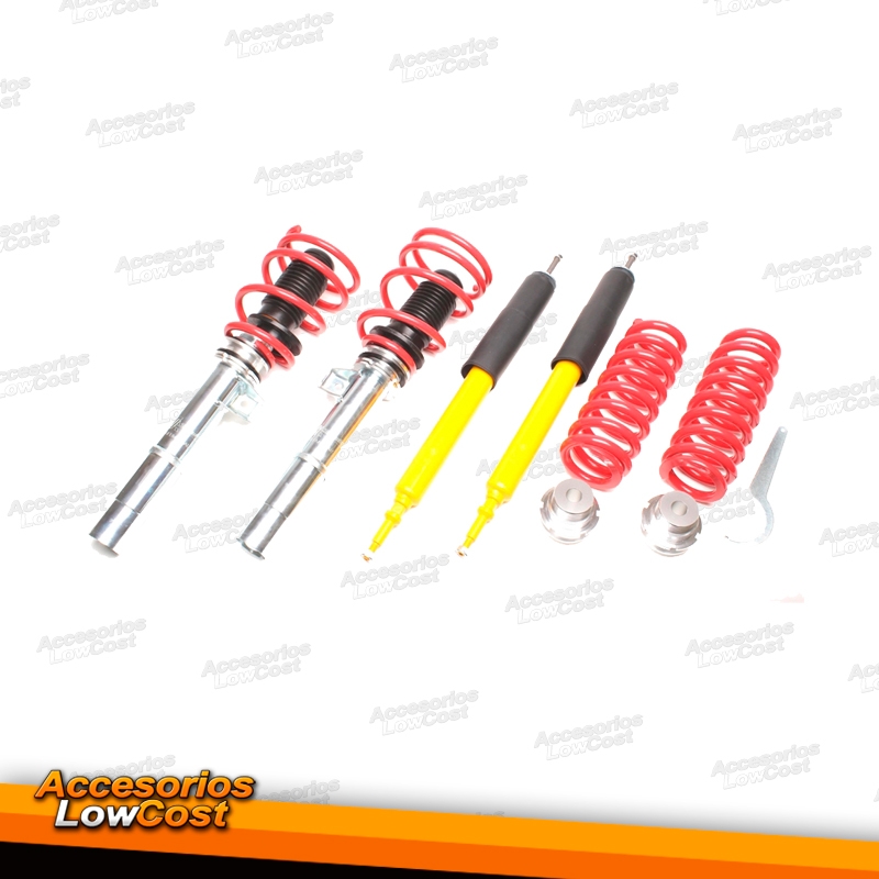 Suspensão de alta performance que permite rebaixar o seu veículo em altura (ATÉ-70 mm) permite rebaixar conforme a sua preferência tanto no eixo traseiro como dianterio. Também poderá afinar a suspensão do automóvel de acordo com as pretensões do seu condutor, variando o comportamento entre o confortável a desportivo e mais duro, ambas as soluções com comprovadas melhorias ao nível do comportamento dinâmico.