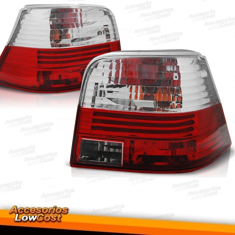 Farolins traseiros para VW GOLF IV 3/5P (97->03) . - Inclui porta lâmpadas. - Cor: Branco. - Cor: Vermelho. - Tipo Vidro - Com homologação e-mark (certificado europeu) gravado no vidro. - Com Garantia de 2 anos.