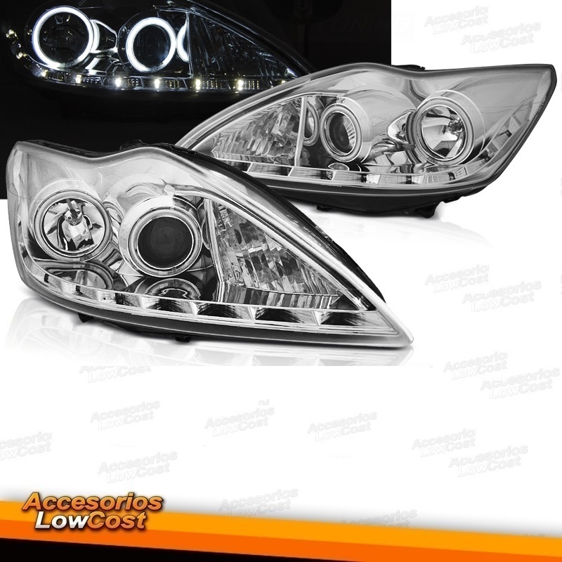 FARÓIS LUZ DIURNA EM LED ANGEL EYES CCFL COM PROJETOR PARA FORD FOCUS MK2 RESTYLING (2/08-3/11) .