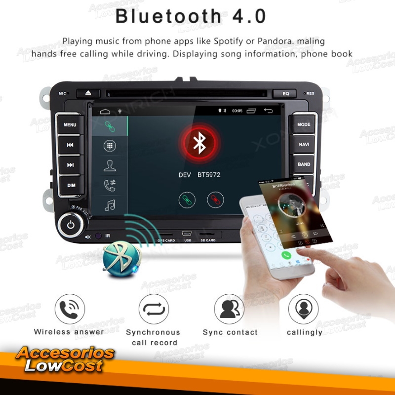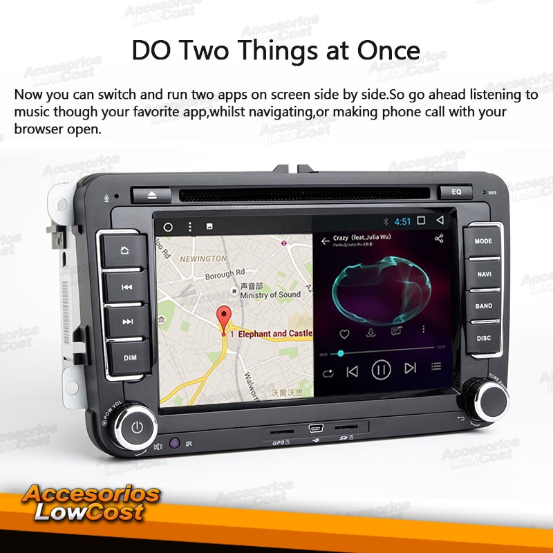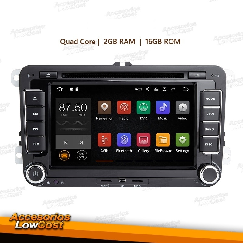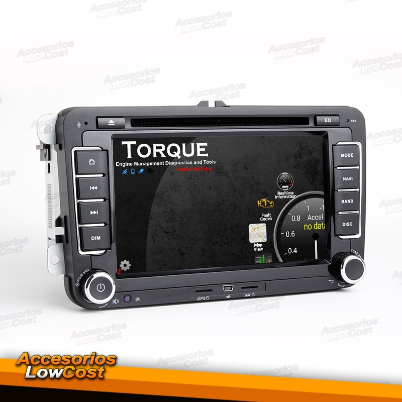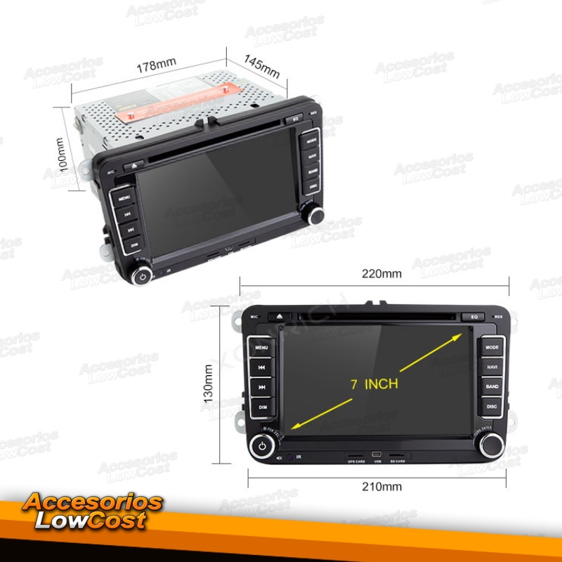 Navegador GPS específico para Volkswagen: Golf 5 (03-08), Golf 6 (08-12), Jetta (05-12), Passat (05-12), Tiguan (07-12), Golf Plus (03-12), Touran (03-12), Eos (06-12), Caddy (04-12), T5 Transporter y Caravelle (10-).