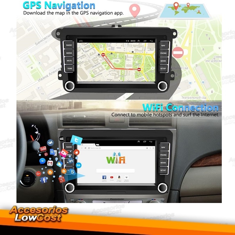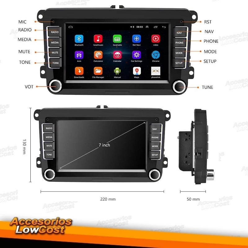 AUTO RADIO 2DIN 8" DVD GPS TIPO OEM ESPECIFICO PARA VOLKSWAGEN SEAT SKODA