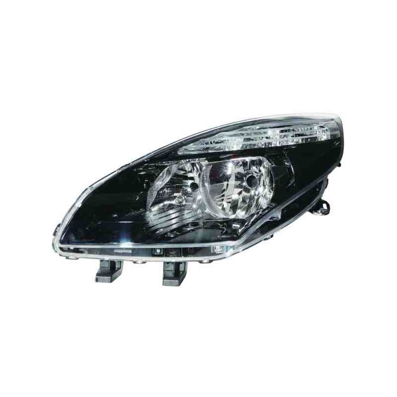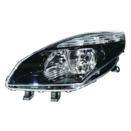 Faróis / Opticas para RENAULT SCENIC III (09->) . - Preparado para sistemas de regulação eléctrica. - Fundo preto - Tipo de lâmpada: H7+H7 - Com homologação e-mark (certificado europeu) gravado no vidro. - Com Garantia de 2 anos.
