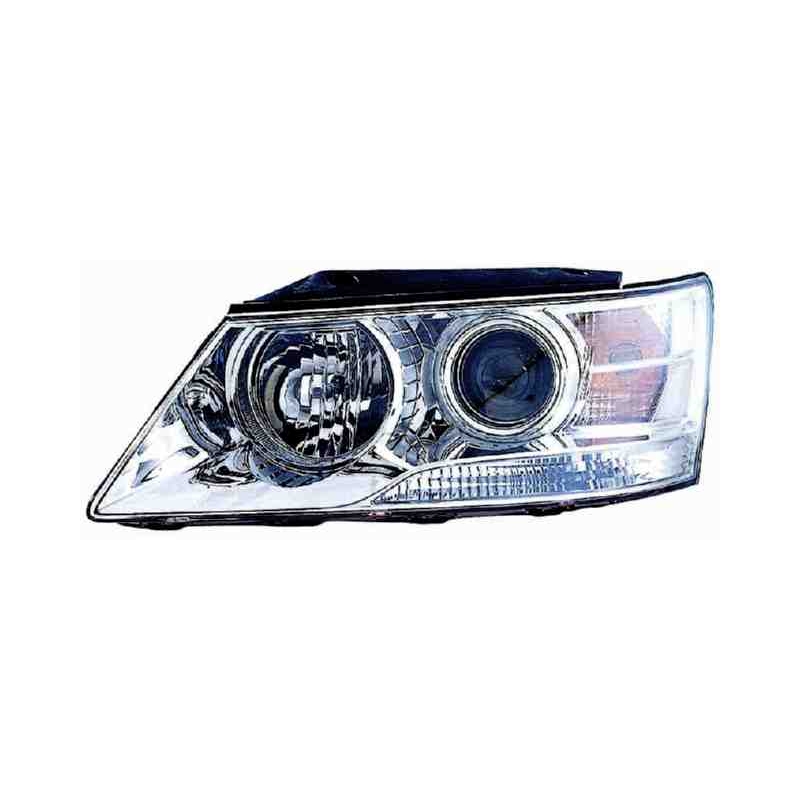 Faróis / Opticas para HYUNDAI SONATA (08->11) . - Preparado para sistemas de regulação eléctrica. - Fundo Cromado - Tipo de lâmpada: H7+H1 - Com homologação e-mark (certificado europeu) gravado no vidro. - Com Garantia de 2 anos.