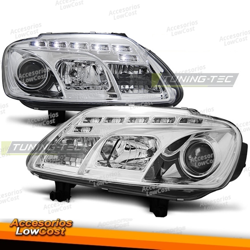 Faróis de projetor com luz de estacionamento LED.