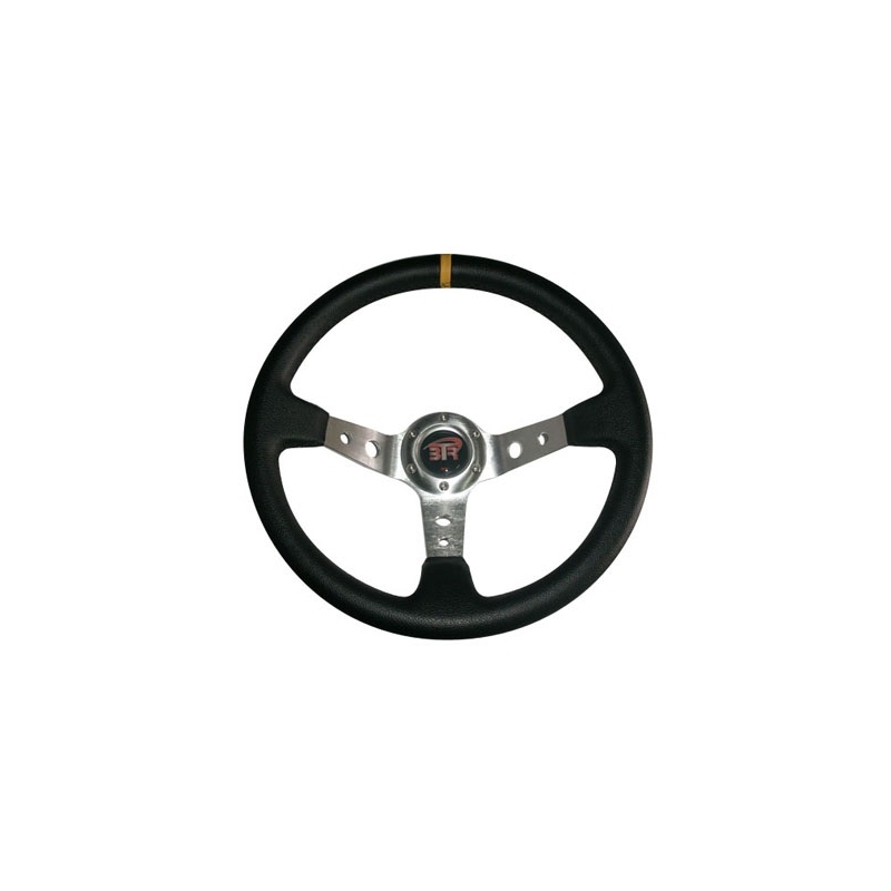 Volante em semi pele prateado com tira amarela.