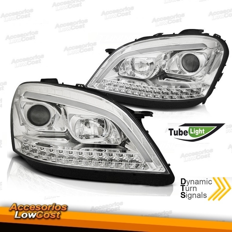 FARÓIS LUZ DIURNA COM PROJETOR (OLHO DE BOI) PARA MERCEDES ML W164. FONDO CROMO (4/08 - 10/11).