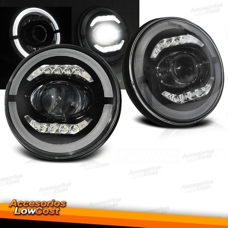 FARÓIS LED PRETOS CHRYSLER JEEP WRANGLER 96-18 ANGEL EYE