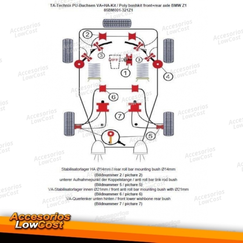 Kit de buchas do eixo dianteiro/traseiro TA Technix PU 14 peças